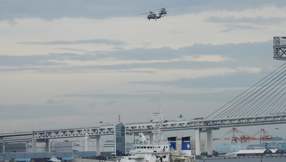 昨年11月6日、横浜港で2機編隊で周回飛行訓練をする海軍ヘリ(25.11.6 星野 撮影)