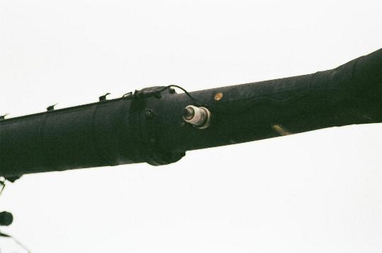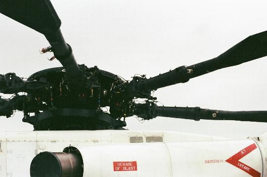 写真は、CH53Dを改良したE型の掃海ヘリバージョン、MH53Eのローター部分だ。放射能標識がついていることがわかる。