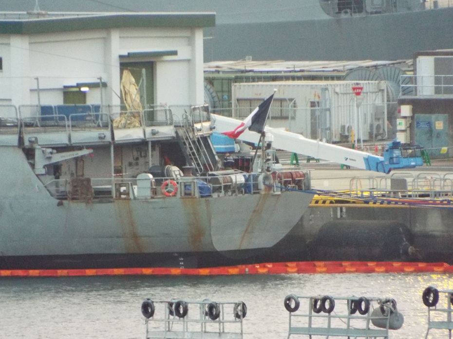 艦尾にフランス国旗が掲げてあるが、艦名などは不鮮明(25.10.26 篠崎 撮影)