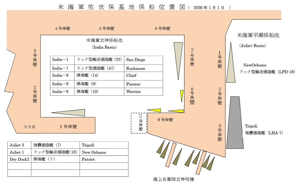 昨年末の12月22日、強襲揚陸艦トリポリ(Tripoli LHA-7)が4週間ほどの短期航海を終えて帰港した後、配備されている米軍艦の動きに変化はなかった。