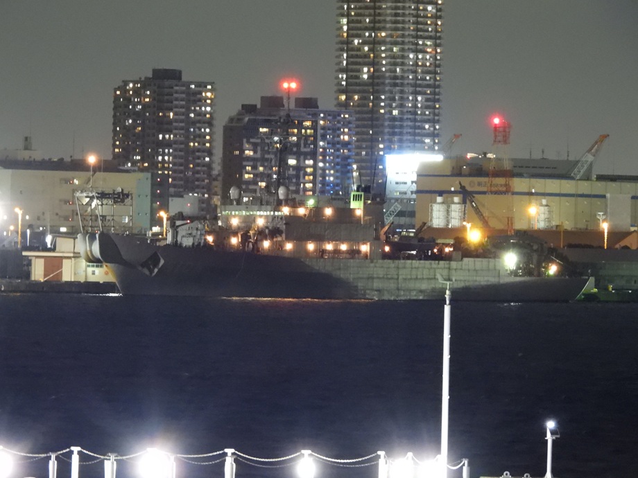 横須賀を母港とする同艦は、この日の午前9時台に横須賀を出港して、10時半過ぎには横浜港の中に入ったのだが、その後、なぜか2時間近くもみなとみらい地区や新港埠頭の前あたりの海上を漂っていた。
