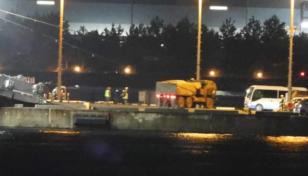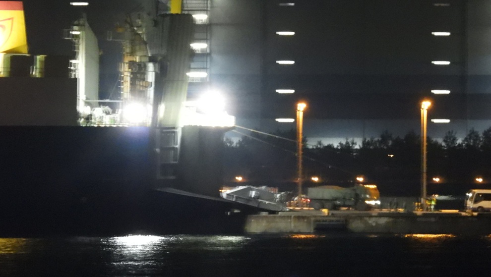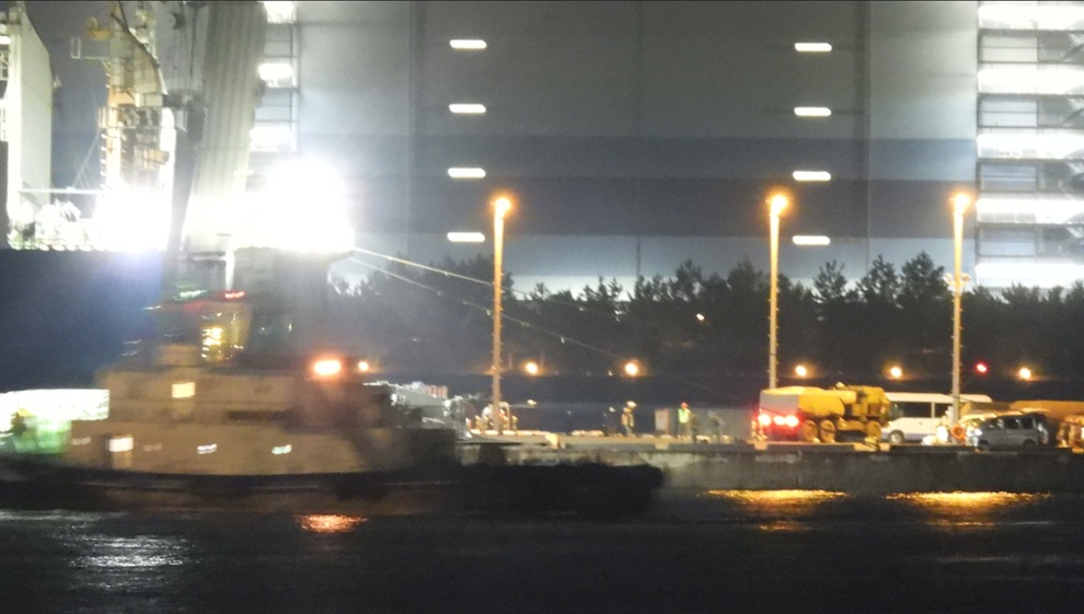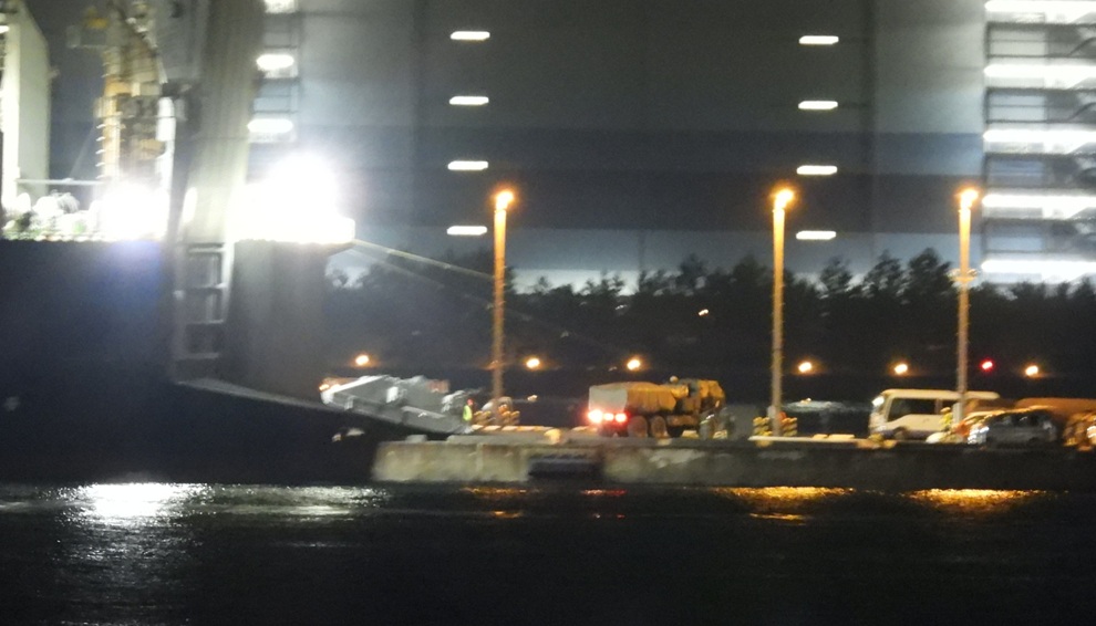 19時台に「デイブレイクス・ベル」は横浜を出港したのだが、意図的に夜になるのを待ってハイマースの積み込みを行ったのか、それとも作業の遅れのために積み込みが出港直前の夜になってしまったのかは不明だ。