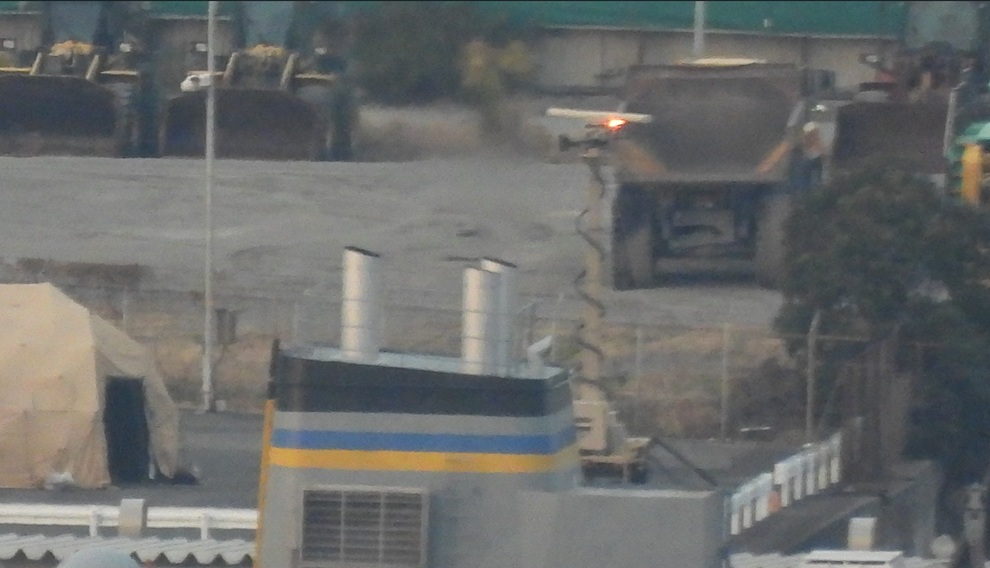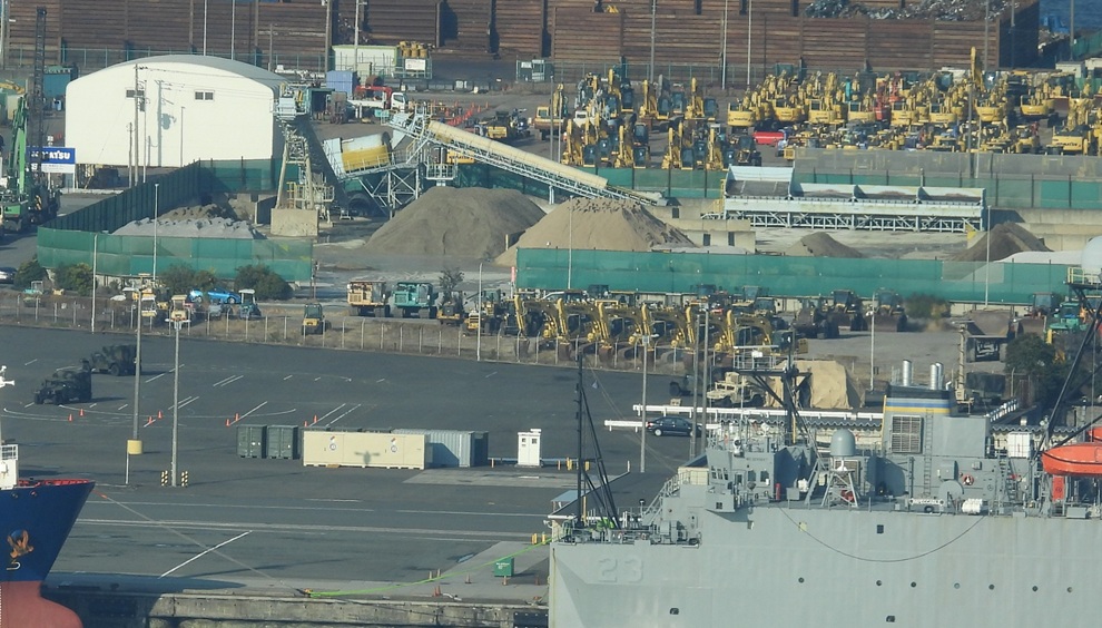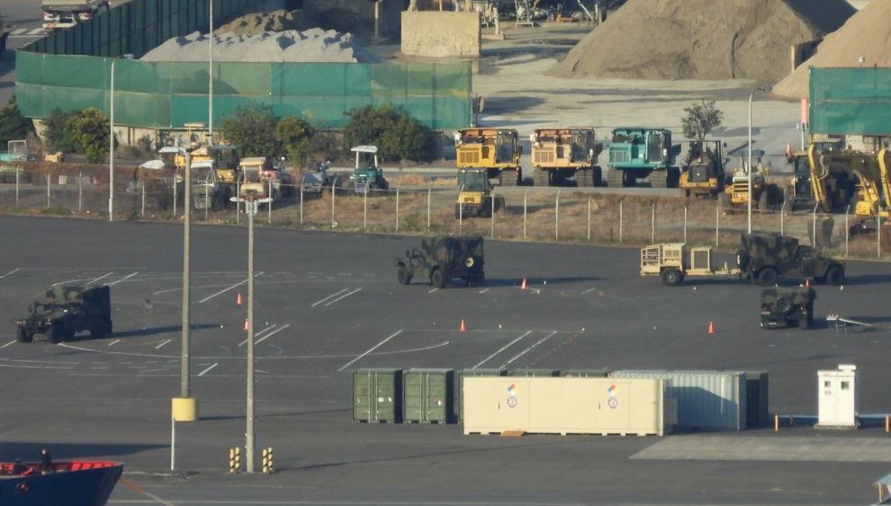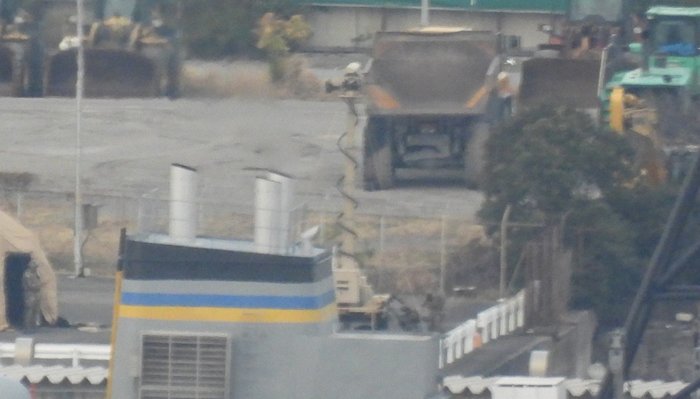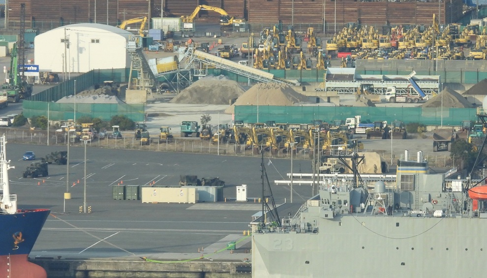 昨年7月前半に横浜ノースドックに搬入された、第545ハーバーマスター分遣隊のものとみられる車両などの装備(25.7.8 星野 撮影)