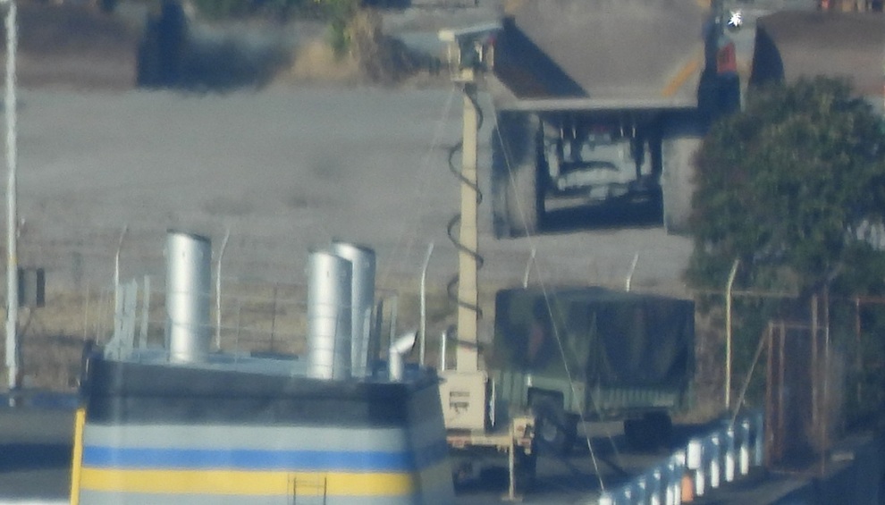 トレーラーに載せられたレーダーとドーム型のテント。テントの中で訓練が行われているとみられる(26.3.10 星野 撮影)