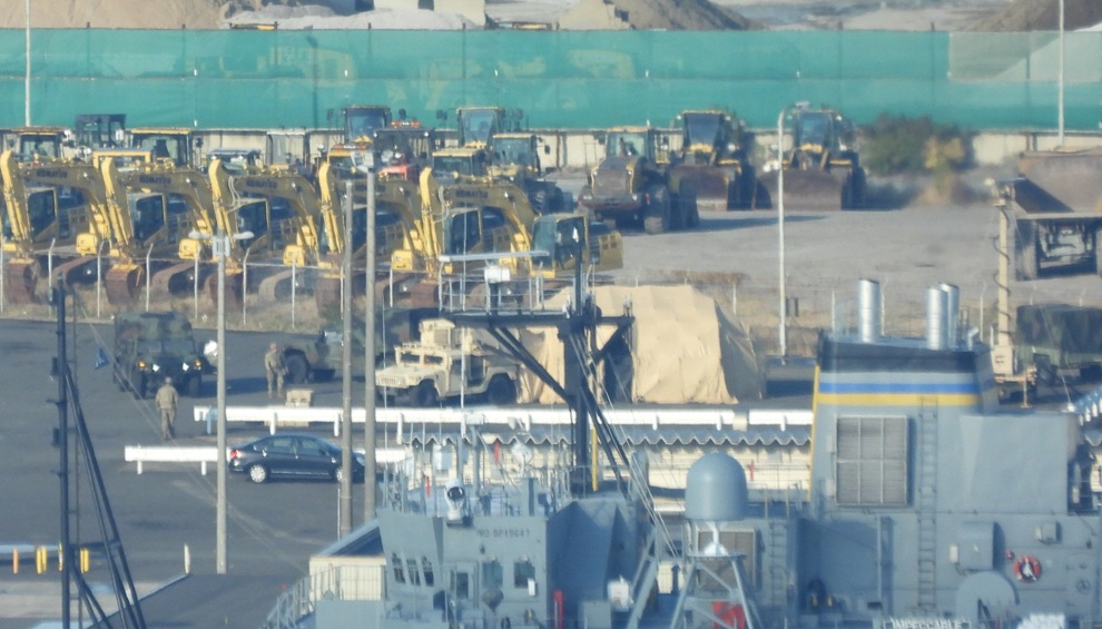 停車している軍用車両も、ハーバーマスター分遣隊のものとみられる(26.3.10 星野 撮影)