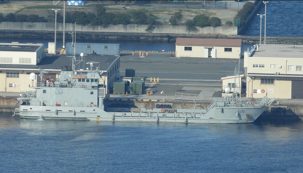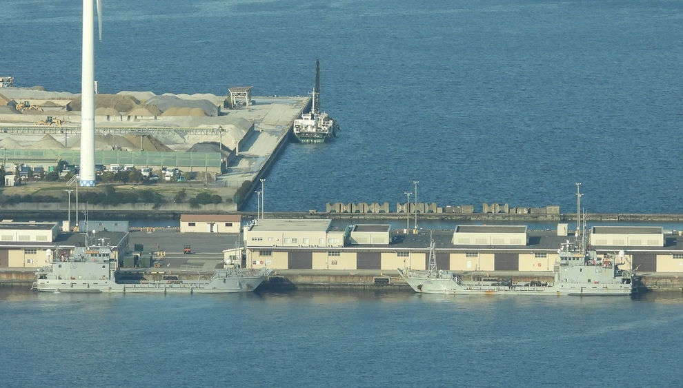 この2隻は、3月6日に「みなとみらい地区」の反対側の揚陸艇の「たまり場」になっているバースからこの位置に移動していた。(26.3.10 星野 撮影)