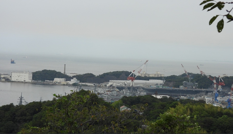 9月15日にSLNCヨークが錨泊していた位置。横須賀基地の12号バースには原子力空母ジョージ・ワシントンが停泊している(25.9.15 星野 撮影)