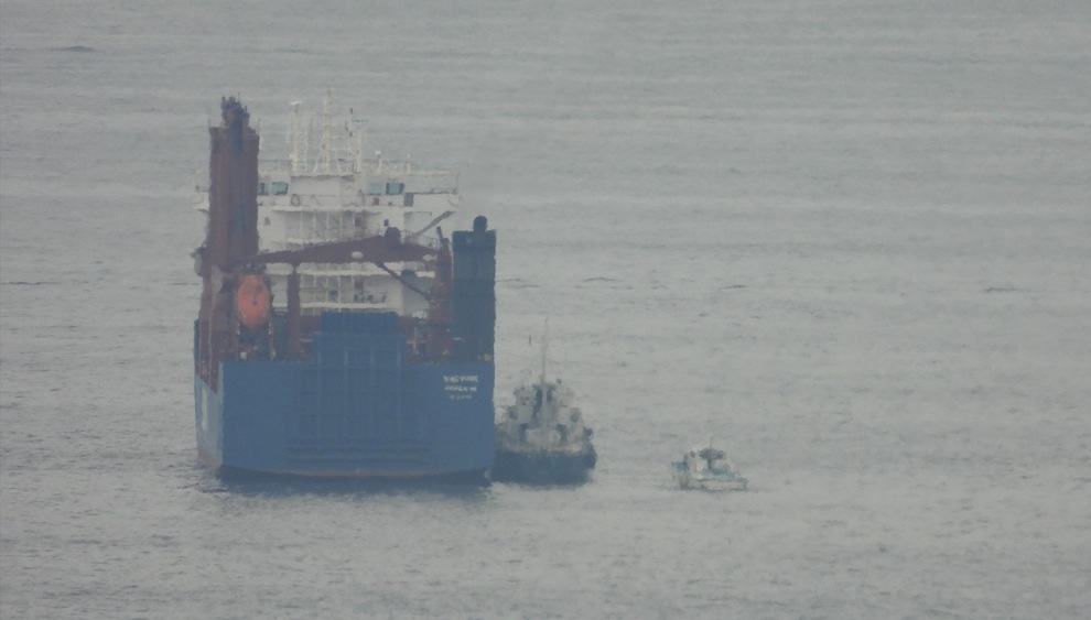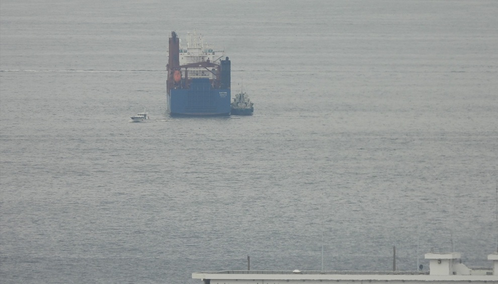 レゾリュート・ドラゴンの輸送を担う貨物船、横須賀錨地に立ち寄る