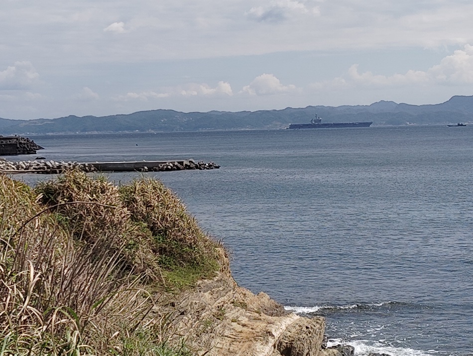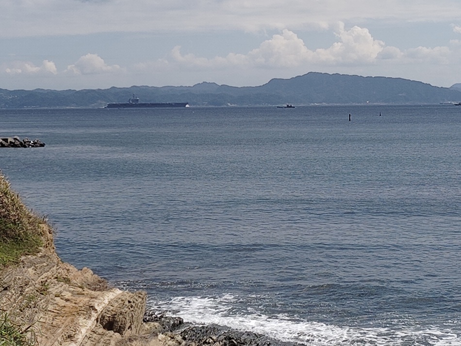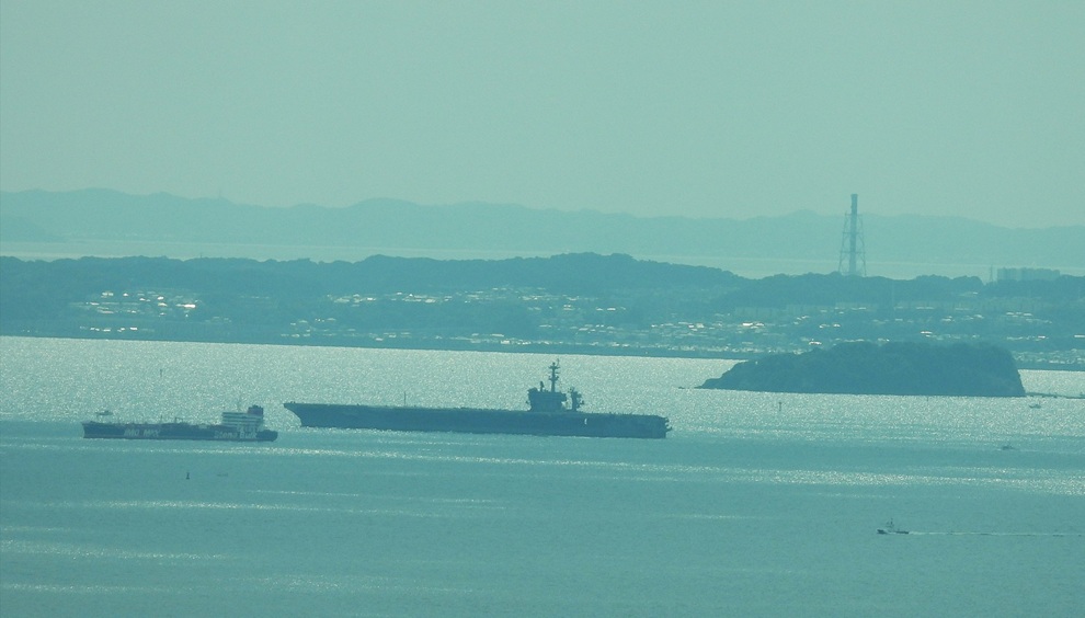 野比海岸の沖を通過する原子力空母(25.9.30 非核市民宣言運動・ヨコスカ 撮影)