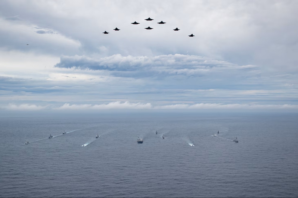 対潜哨戒機のP-8Aポセイドンも参加した。ルイス・アンド・クラーク級貨物弾薬補給艦アメリア・イアハート(T-AKE6、全長210m、満載排水量42,674トン)、同級のウォーリー・シラ(T-AKE8)、給油艦ティペカヌー(T-AO 199、全長206.5m、満載排水量41,886トン)と補給重視の編成で望んだ。岩国基地に恒常的に配備されている米海兵隊の戦闘攻撃飛行隊VMFA242のF-35BライトニングIIも参加した。