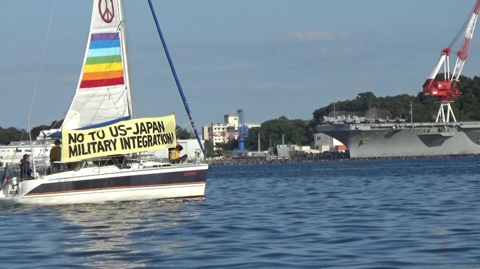 10月28日、原子力空母ジョージ・ワシントンとヨコスカ平和船団(25.10.28 木元 撮影)