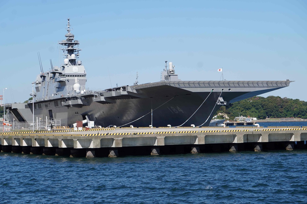 10月17日、海上自衛隊逸見岸壁に接岸した「かが」(25.10.17 非核市民宣言運動・ヨコスカ 撮影)