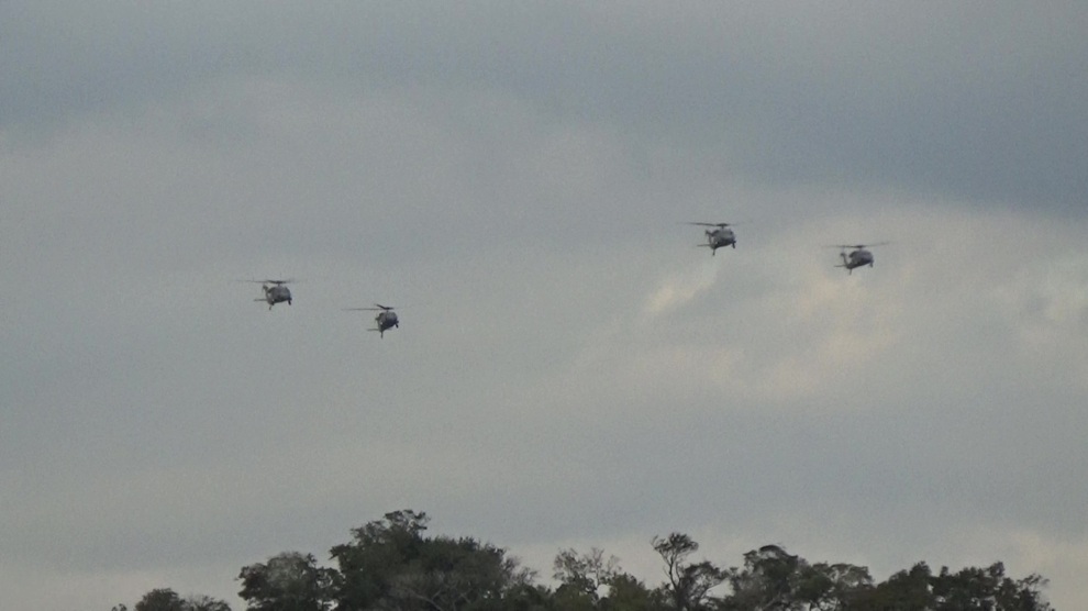 厚木基地を離陸したMH-60Sの4機編隊が午後3時20分ごろ横須賀基地上空に姿をあらわした。