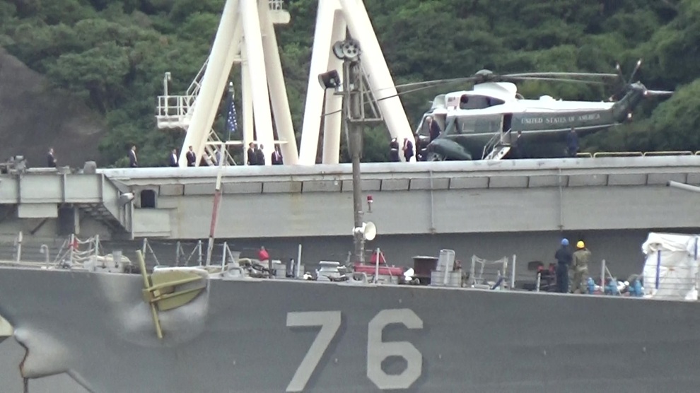 10月28日、トランプ米大統領と高市首相は米大統領専用ヘリに乗って横須賀基地の原子力空母ジョージ・ワシントン(GEORGE WASHINGTON CVN 73)を訪問し、演説を行った。