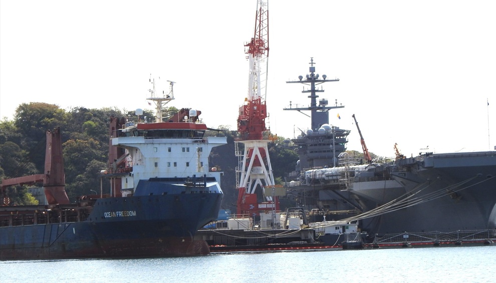 13号バースの隣の12号バースでは、原子力空母ジョージ・ワシントン(GEORGE WASHINGTON CVN 73)が現在停泊し、定期修理を行っている。