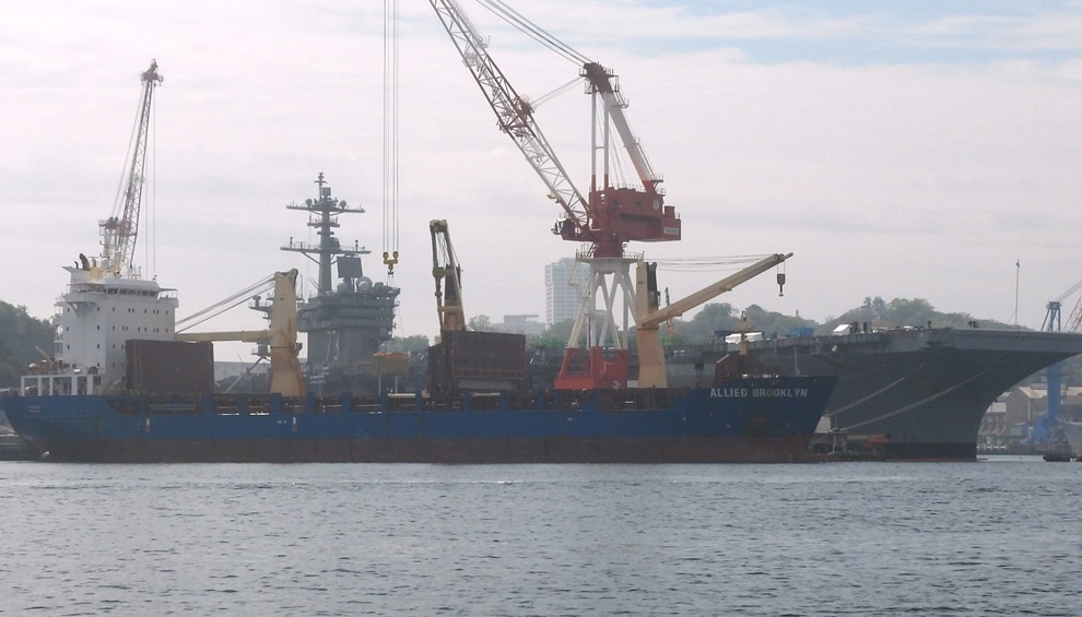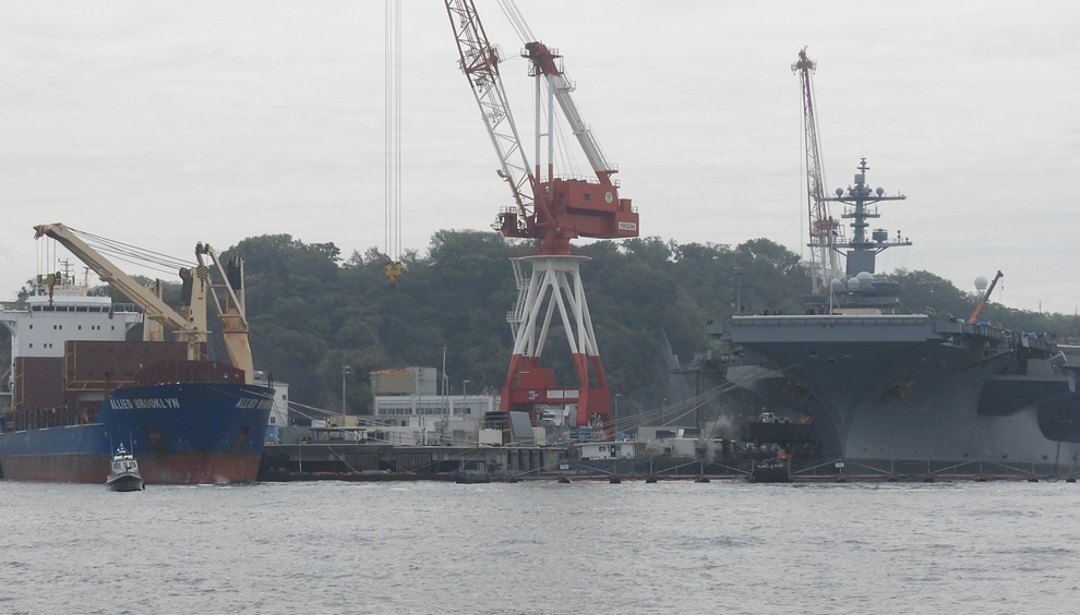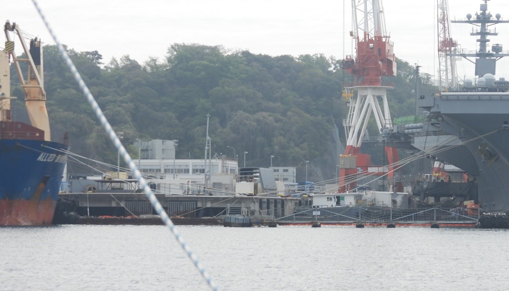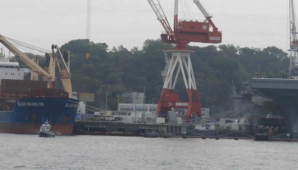 4月15日、横須賀基地で原子力空母ジョージ・ワシントン(GEORGE WASHINGTON CVN 73)の定期修理で排出された放射性廃棄物を搬出し、クレーンで吊って貨物船アライド・ブルックリン(ALLEIDE BROOKLYN)に搬入する作業が行われた。