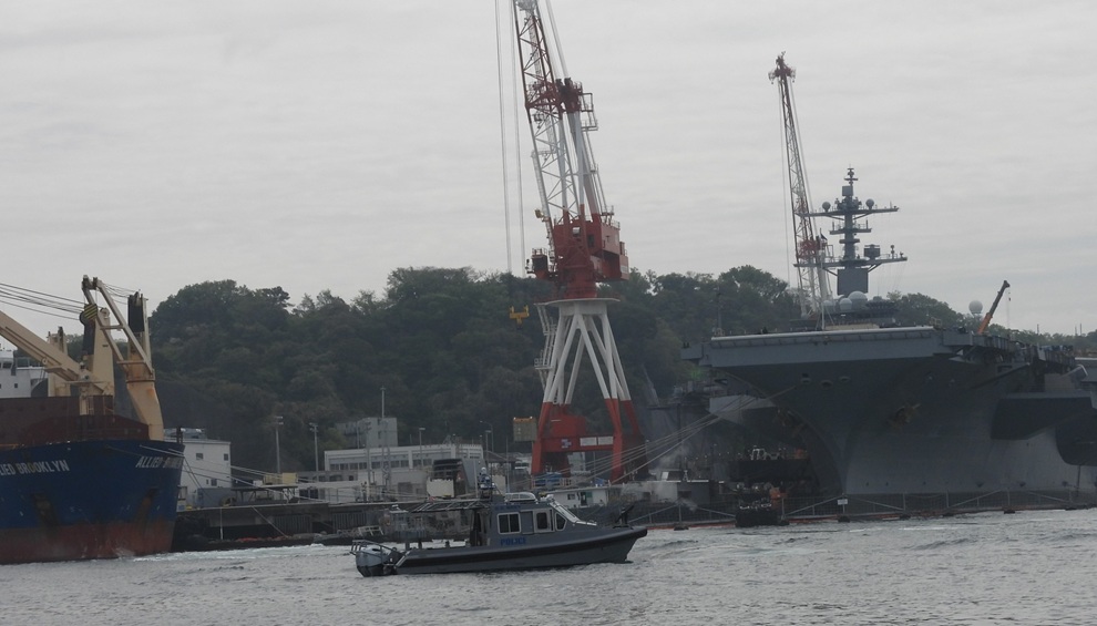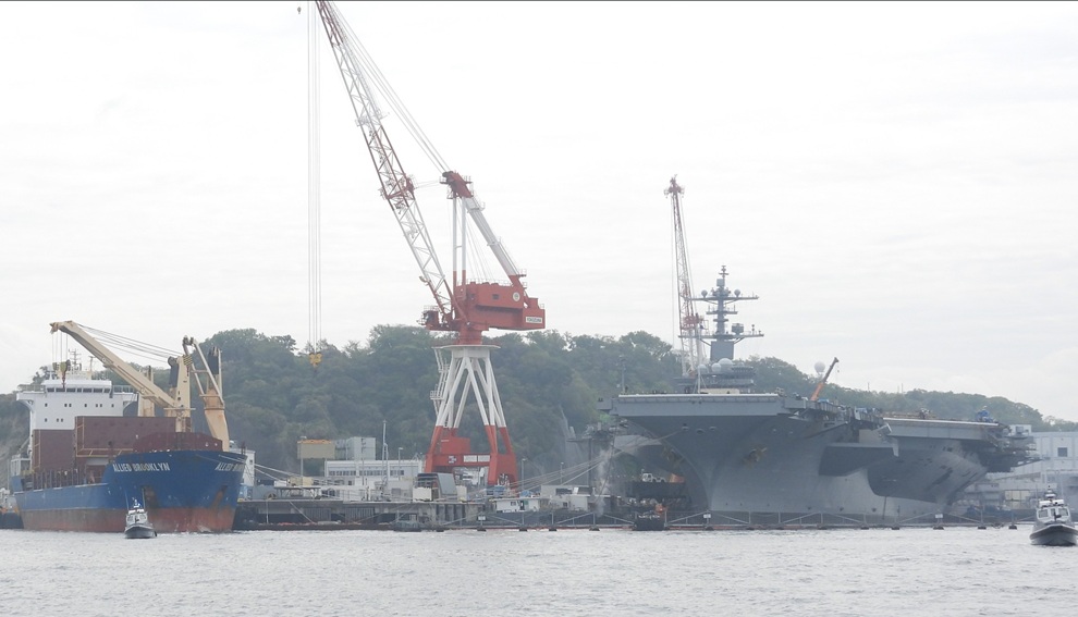 原子力空母、横須賀で放射性廃棄物を艦外に搬出