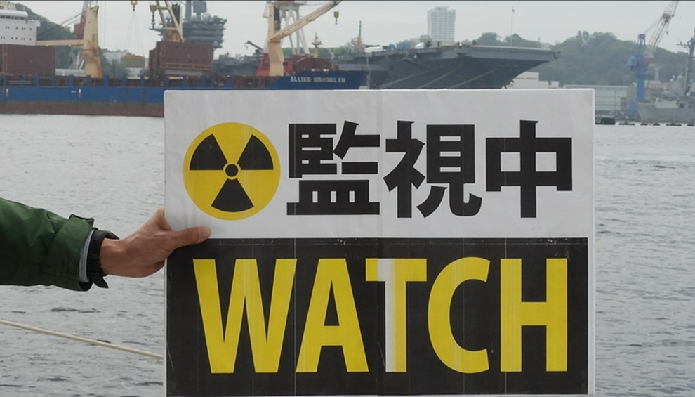 4月15日には、ヨコスカ平和船団による海上からの監視行動が行われたほか、安針台公園からも市民の監視行動が行われ、軍港に面したヴェルニー公園でも、横断幕を掲げて市民が抗議を行った。